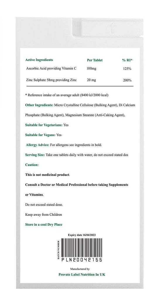 ZINC 20mg VITAMIN C 100mg 180 Tablets suitable for Vegan & Vegetarian Helps to Support your Immune System