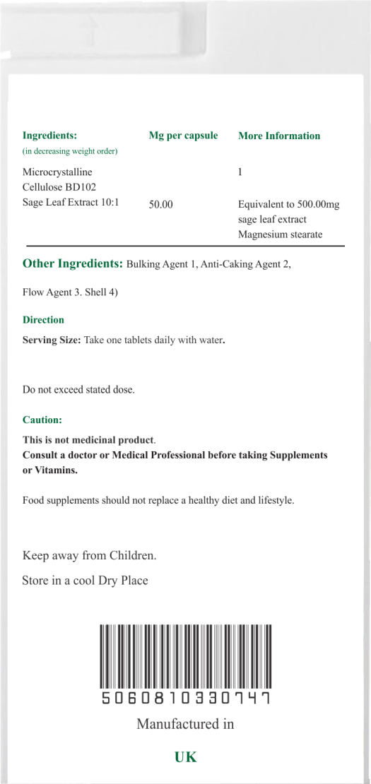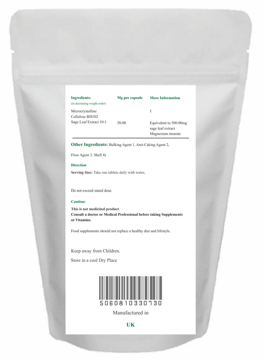 Sage Extract 500mg Menopause Hot Flush Support 60 Tablets Female HRT Suitable for Vegan and Vegetarian