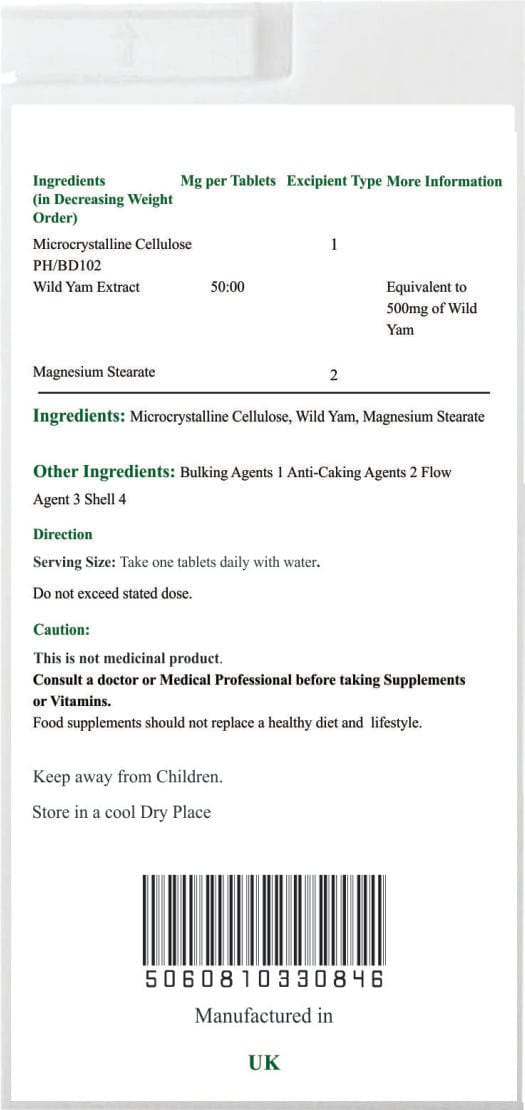 Wild Yam Extract 500mg 30 Tablets Supplements Hormonal Balancve Menopause Support
